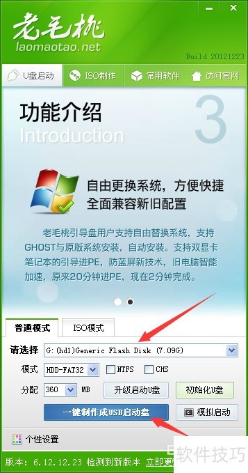 4、 打开一款U盘启动盘制作软件,如老毛桃,可自行下...