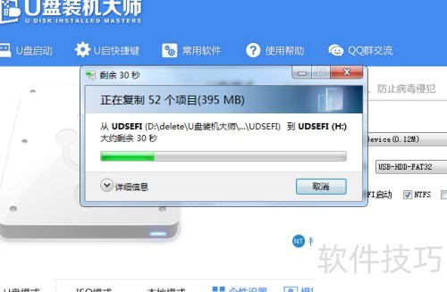 6、 文件复制完毕后,进度条会走完,表示安装成功。此时查看U盘,若发现相关文件已存在,说明安装已完成。