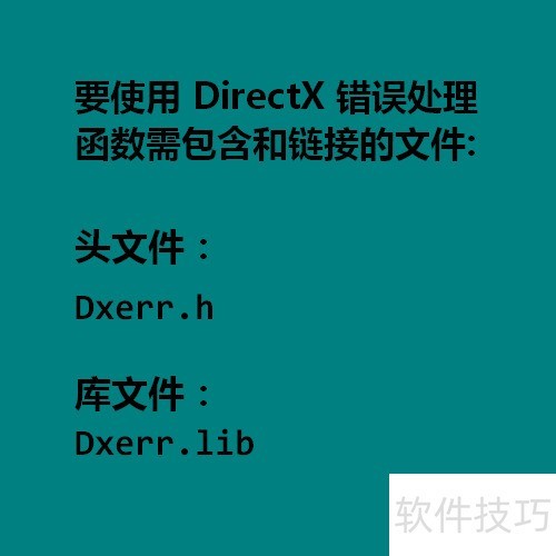 1、 在工程中若需调用DirectX错误处理函数,应包含Dxerr.h头文件并链接Dxerr.lib库文件。