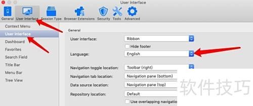 6、 根据图示操作,将箭头所指的English改为Chinese,保存后重启程序即可完成中文设置。