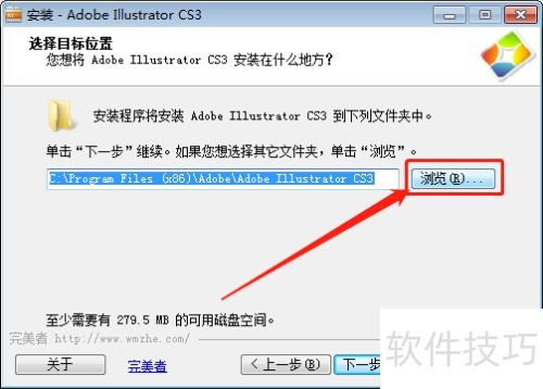 3、 安装位置对话框弹出后,点击浏览按钮选择路径。