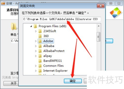 4、 弹出文件夹浏览窗口,选定安装路径后点击确定。