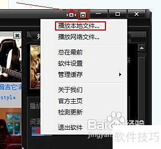 4、 有时需播放本地视频,可点击窗口右上角的下拉按钮,从菜单中选择播放本地文件,随后在弹出的对话框中选中目标视频,点击打开即可开始播放。操作简单,方便快捷。