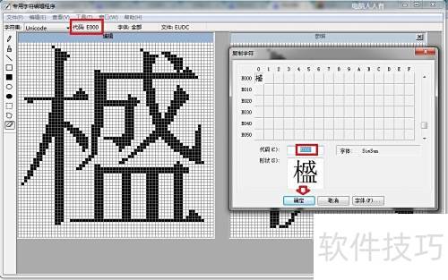 16、 在弹出框中输入代码E000,右键点击即可复制该字。