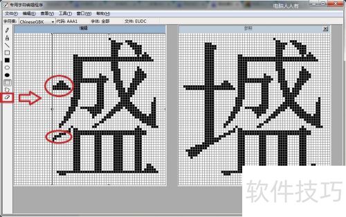 11、 用鼠标选中右侧的盛字,悬停时鼠标会变成菱形,按住不放将其拖拽至左侧编辑框,最后用工具栏底部的橡皮擦擦除多余部分即可。