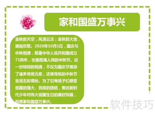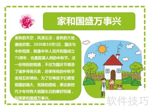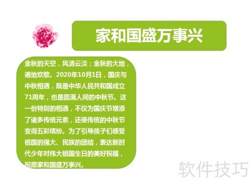 4、 在绘制好的文本框内,详细阐述家和国盛万事兴的内涵与意义。