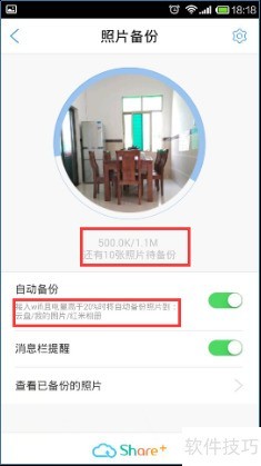 2、 开启自动备份功能后,当手机连接Wi-Fi且电量超过20%时,系统会自动上传新拍摄的照片至云端,无需手动操作。一旦检测到新照片,通知栏将显示备份提示,方便用户随时掌握备份状态。