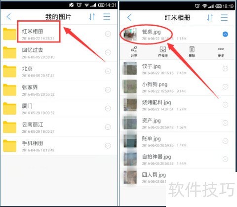 3、 备份完成后,照片将保存在首页我的图片中的相应相册里,打开即可查看与手机相册完全一致的内容,还可通过天翼云轻松分享至朋友圈、微博等社交平台。