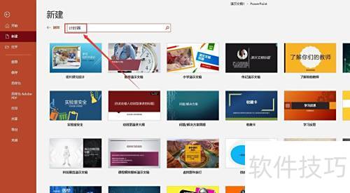 4、 随后在模板搜索框中输入计时器,按下回车键即可开始查找。