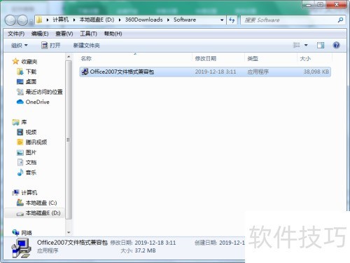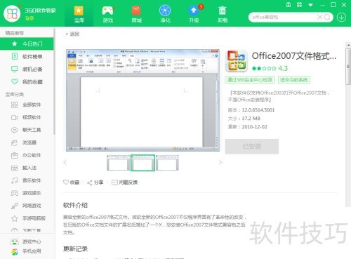 3、 点击一键安装,即可完成Office 2007文件兼容包的下载与安装。