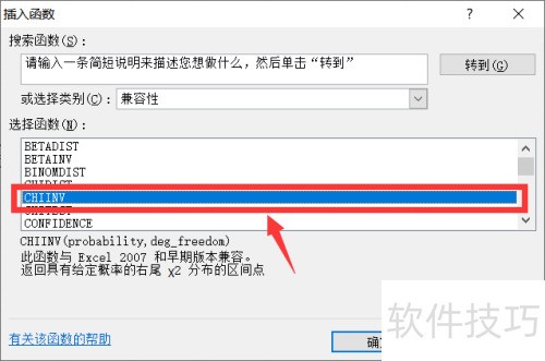 3、 找到名为CHIIVE的函数并点击确认,操作所示。