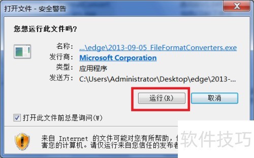 3、 双击运行下载的FileFormatConverters.exe文件完成安装,之后即可正常打开高版本Word文档。
