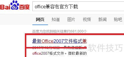 1、 在百度搜索框输入office兼容包官方下载即可找到相关资源。