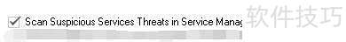 5、 在弹出的窗口中,请勾选在服务管理器中扫描可疑服务威胁选项,以确保系统安全检测全面覆盖相关风险。