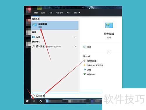 1、 在Win10左下角搜索框中输入控制面板并点击进入。