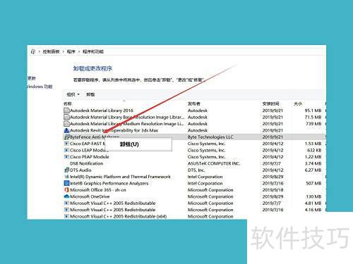 9、 找到Bytefence反恶意软件,右键选择卸载即可完成操作。