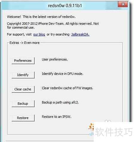 8、 红雪Redsn0w可自动完成固件恢复,无需借助iTunes操作。