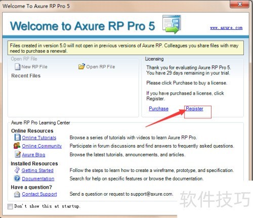 9、 在弹出的欢迎窗口中,点击Register按钮,操作所示。