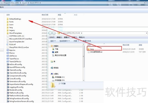 5、 将解压后的汉化包中 lang 文件夹复制到 Axure RP 安装目录即可完成汉化。
