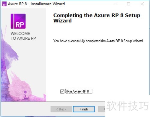 9、 取消勾选运行选项,因安装的是英文版需先汉化,故暂不启动程序。可在网上下载对应汉化包,相关教程丰富,此处不再赘述。安装完毕后,桌面会生成快捷方式,双击即可开启Axure RP软件。