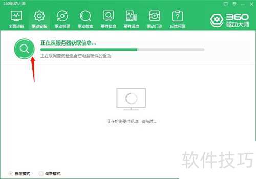 1、 首先启动桌面的360驱动大师程序,操作界面所示。