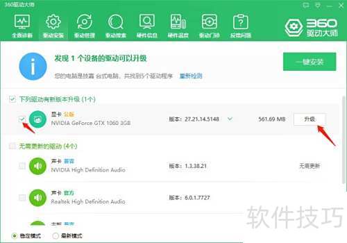 3、 最后可查看需更新的驱动,勾选后点击升级即可完成操作。