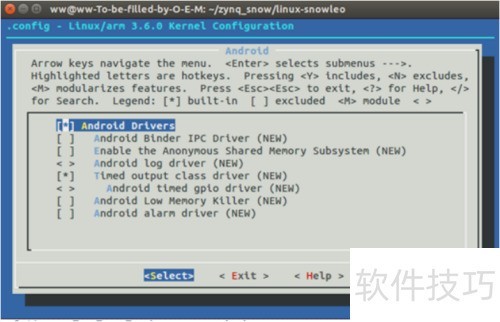 6、 运行make menuconfig打开配置界面,所示,按下Y键可将所需驱动编译进内核,按ESC键保存并退出。