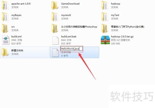 2、 新建一个文本文档,将其名称修改为HelloWorld,并将文件扩展名更改为java。