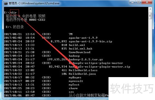 6、 进入你存放Java文件的目录,例如E盘,然后切换到该盘符。