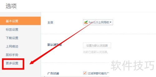 5、 在选项窗口中,点击更多设置按钮,操作示。