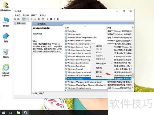 3、 在服务列表中定位并找到Windows Installer服务项。