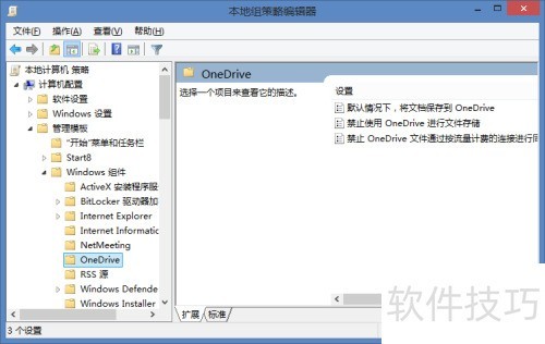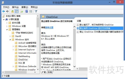3、 右侧选项中,禁用OneDrive作为文件存储方式。