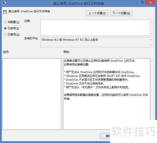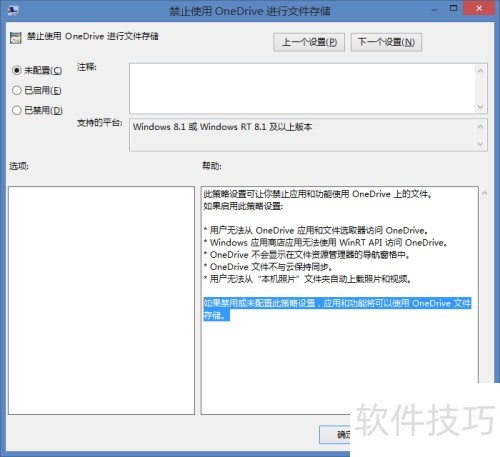 5、 默认情况下,若未启用或未设置此策略,应用和功能可正常使用 OneDrive 文件存储服务。