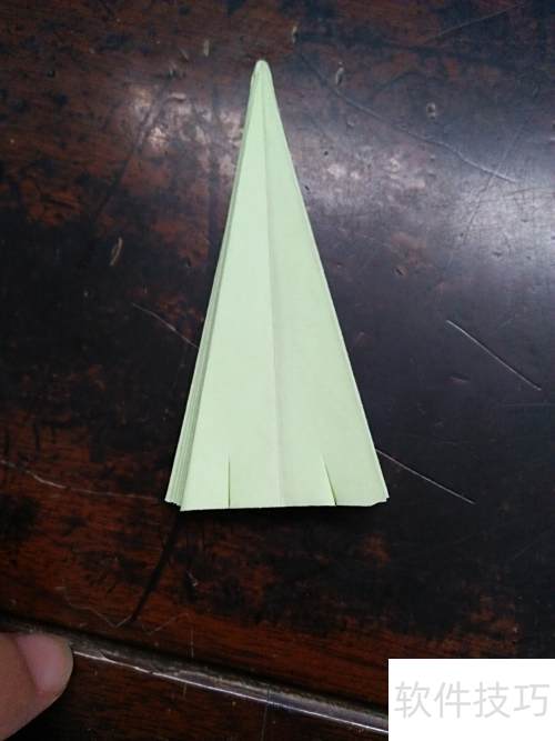 5、 将折好的纸沿边缘剪开,每张竖直剪两刀,具体所示。