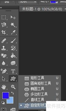 3、 按下Ctrl+Shift+Alt+N可快速新建图层,接着在工具栏中找到自定义形状工具,其快捷键为U。