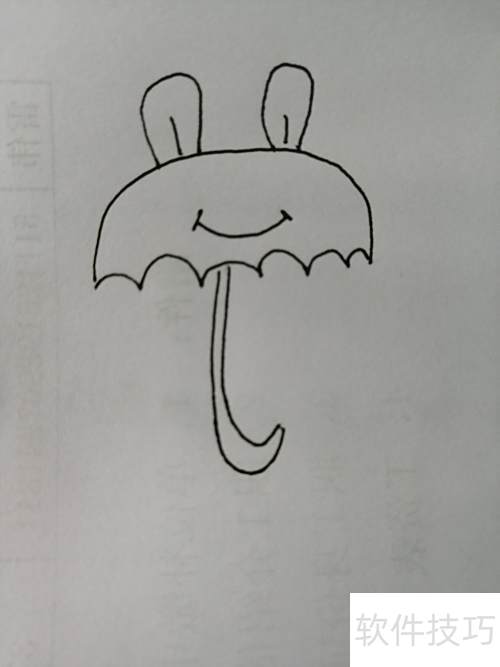 6、 第六步,在小雨伞内画一个微笑的嘴巴。