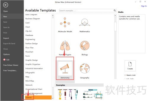 8、 启动Edraw Max,进入科学绘图板块,点击天文学分类。