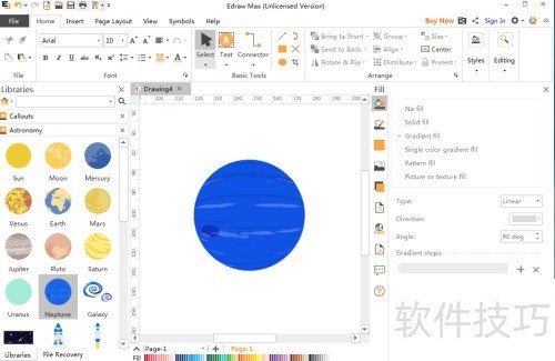 7、 在Edraw Max中,我们已成功绘制出所需的海王星。