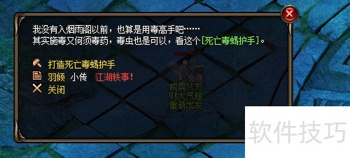 4、 先找到排名第一的羽倾,若有空闲,可查看NPC背景故事,最后点击打造,即可发现六大神手之一的死亡毒蝎护手。