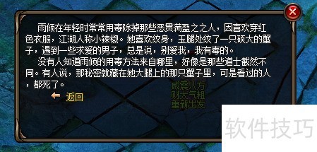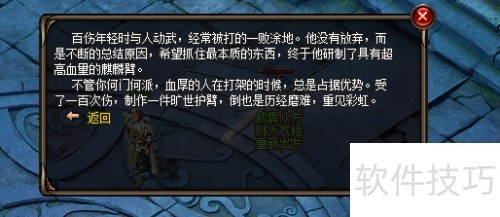 8、 按照提示可知,烟雨阁弟子皆为身怀绝技之人。这位同伴的特长便是炼制麒麟臂,佩戴后可大幅提升气血值,实乃难得的妙技。