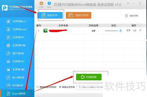 3、 将Excel文件导入后,需选择对应的转换模式,此处应选Excel转PDF。随后设置转换后文件的保存路径,点击浏览按钮,在弹出窗口中选定目标文件夹。确认无误后,点击开始转换即可自动将文件转换为PDF格式,操作简便,转换完成后可在指定位置查看生成的PDF文件。整个过程流畅高效,适合批量处理需求。