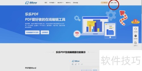 1、 将PDF转为Excel,需先登录或注册乐乐PDF平台。