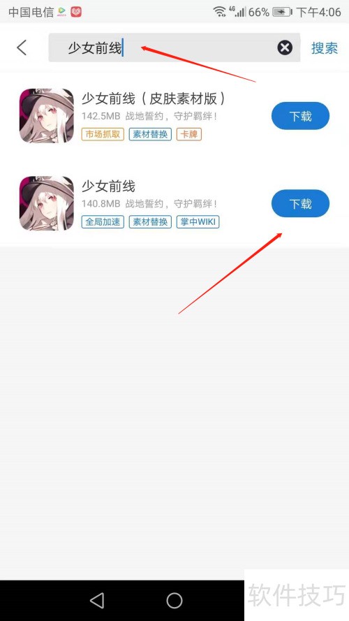 3、 打开页面后,在顶部搜索少女前屈爹线,按提示下载即可,详见图示。