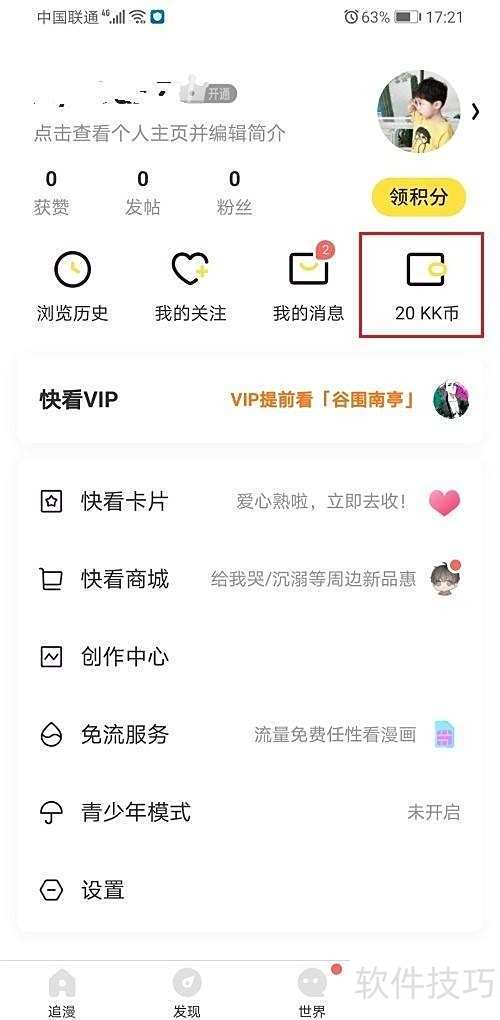 3、 进入快看漫画我的页面,点击我的钱包即可。