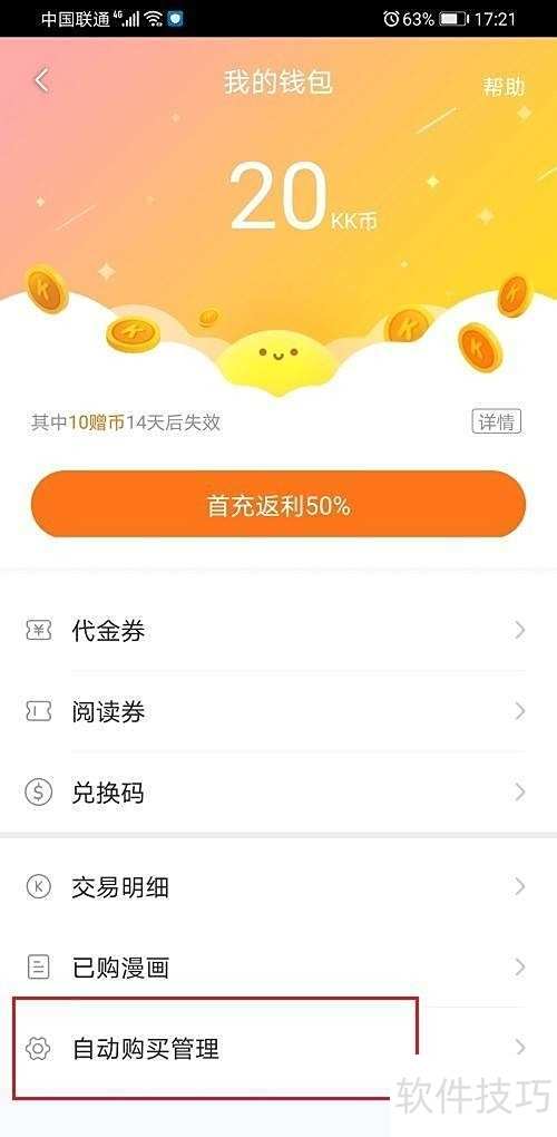 1、 取消漫画自动购买功能,可进入我的钱包进行设置,具体操作所示。