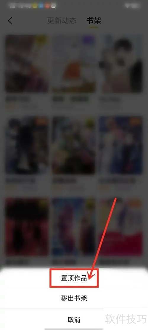 4、 在底部弹出窗口中选择置顶作品,即可将关注的漫画置顶。