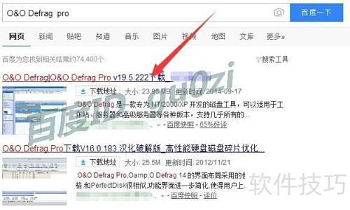 1、 在百度首页搜索O&O Defrag Pro,点击搜索结果中的下载链接,获取并安装对应版本的软件包。