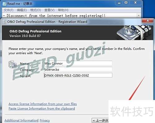 10、 请输入用户名、公司名称及序列号,点击下一步继续。