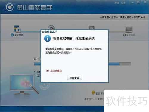 7、 重装系统需重启电脑三次,每次均有提示,倒计时30秒后自动重启,请勿紧张。整个过程无需操作,完成后将自动进入桌面,确保设备正常运行。