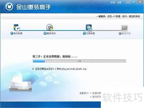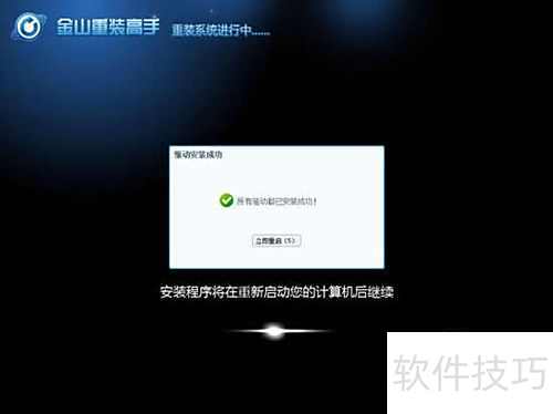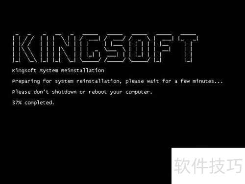 8、 点击重启后,系统将自动替换文件并进入配置阶段,请在重启后耐心等待KINGSOFT界面及系统配置完成,切勿强制关机。